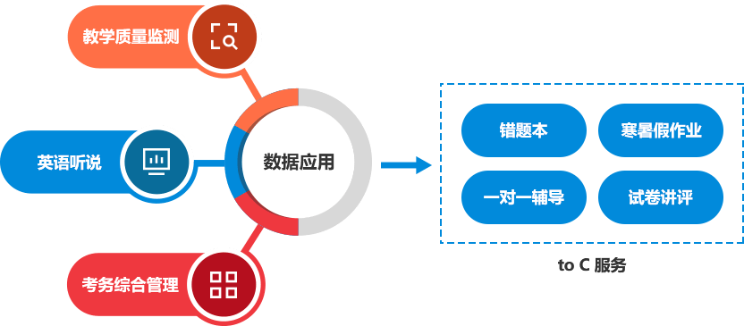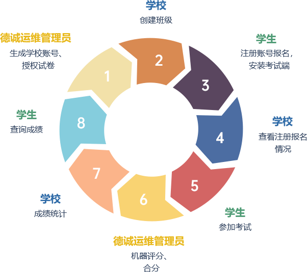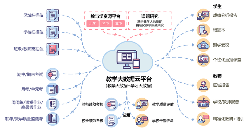 通过学校自主组织考试、答题卡制作、扫描识别、网上阅卷等流程,收集考生的考试成绩,建 立起大数据考试分析系统,
