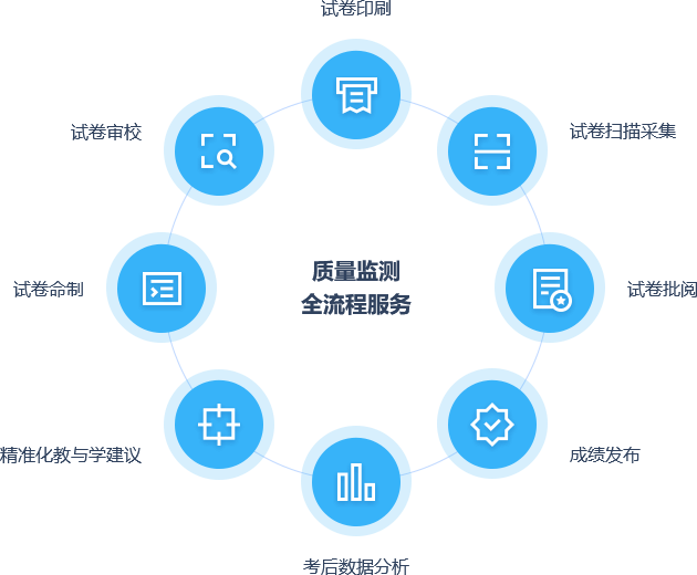 为学校提供从试卷命题到数据分析的全流程考试服务。 依据学校各阶段教学质量检测目标,命制相应的试卷,全面覆盖单元卷、